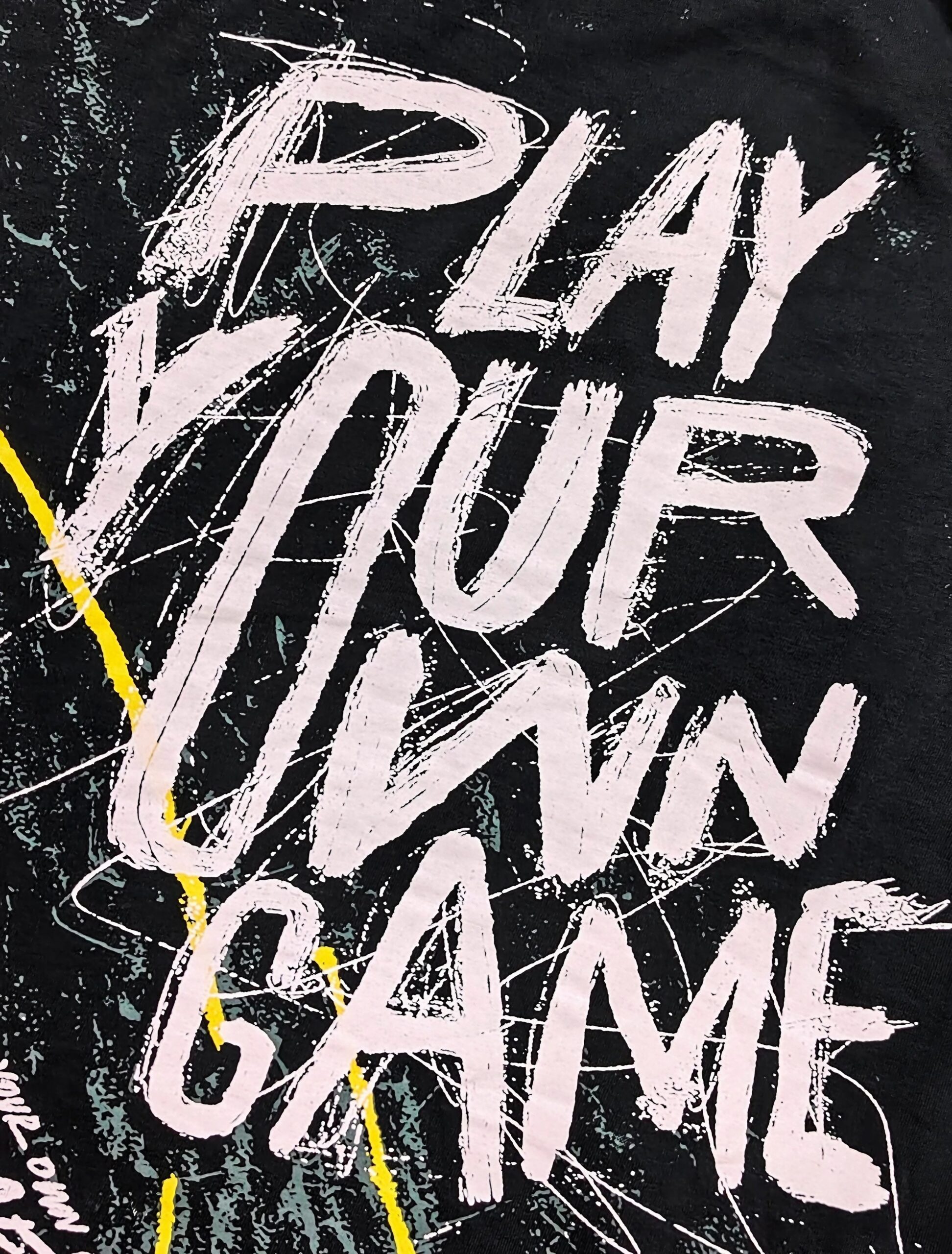 ✔ Bold Statement Graphic: Features “Play Your Own Game” typography with an artistic grunge-inspired design.