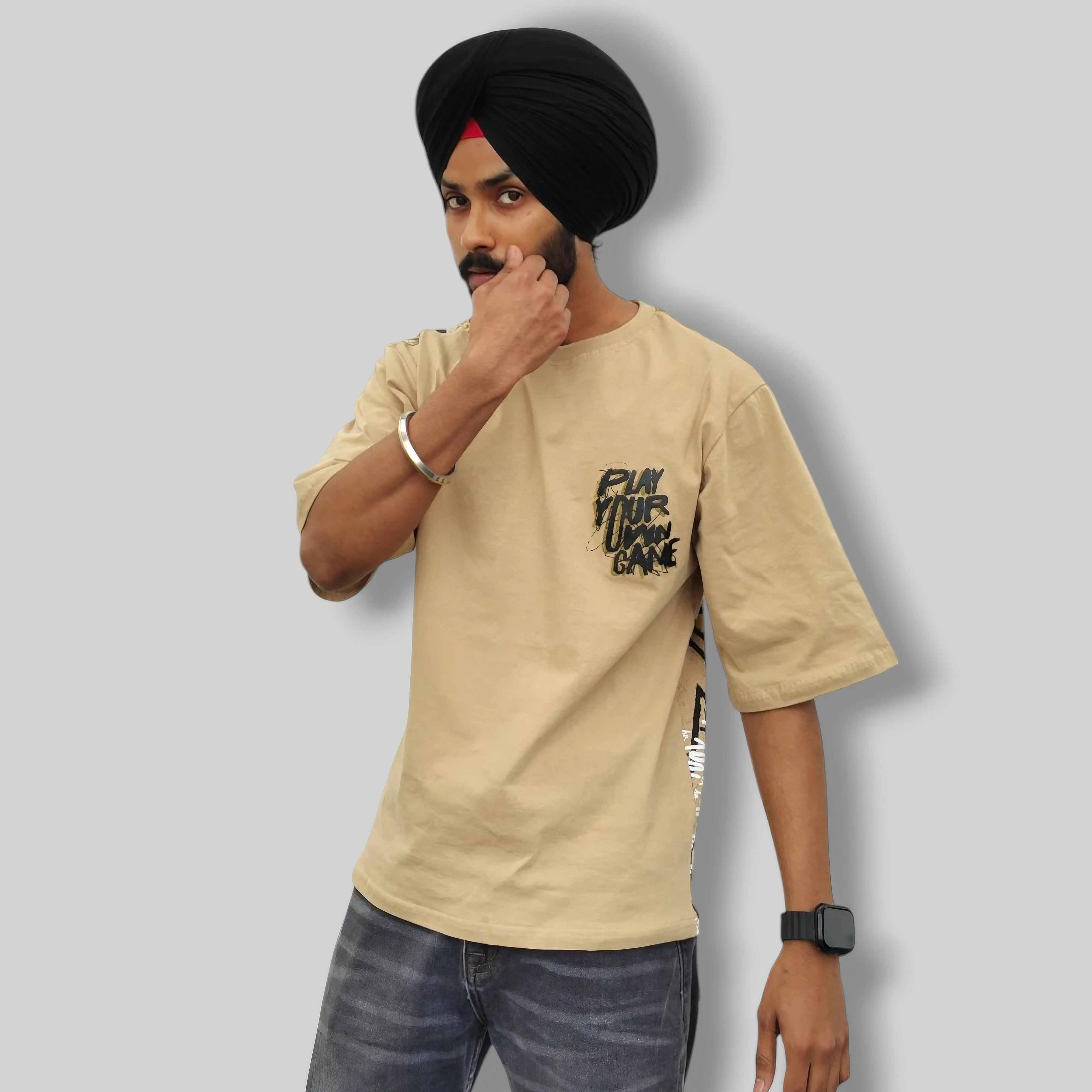 Step up your streetwear game with the Play Your Own Game Oversized Tee in an exclusive beige colorway. Designed for those who carve their own path, this oversized statement piece combines comfort, durability, and urban-inspired aesthetics.