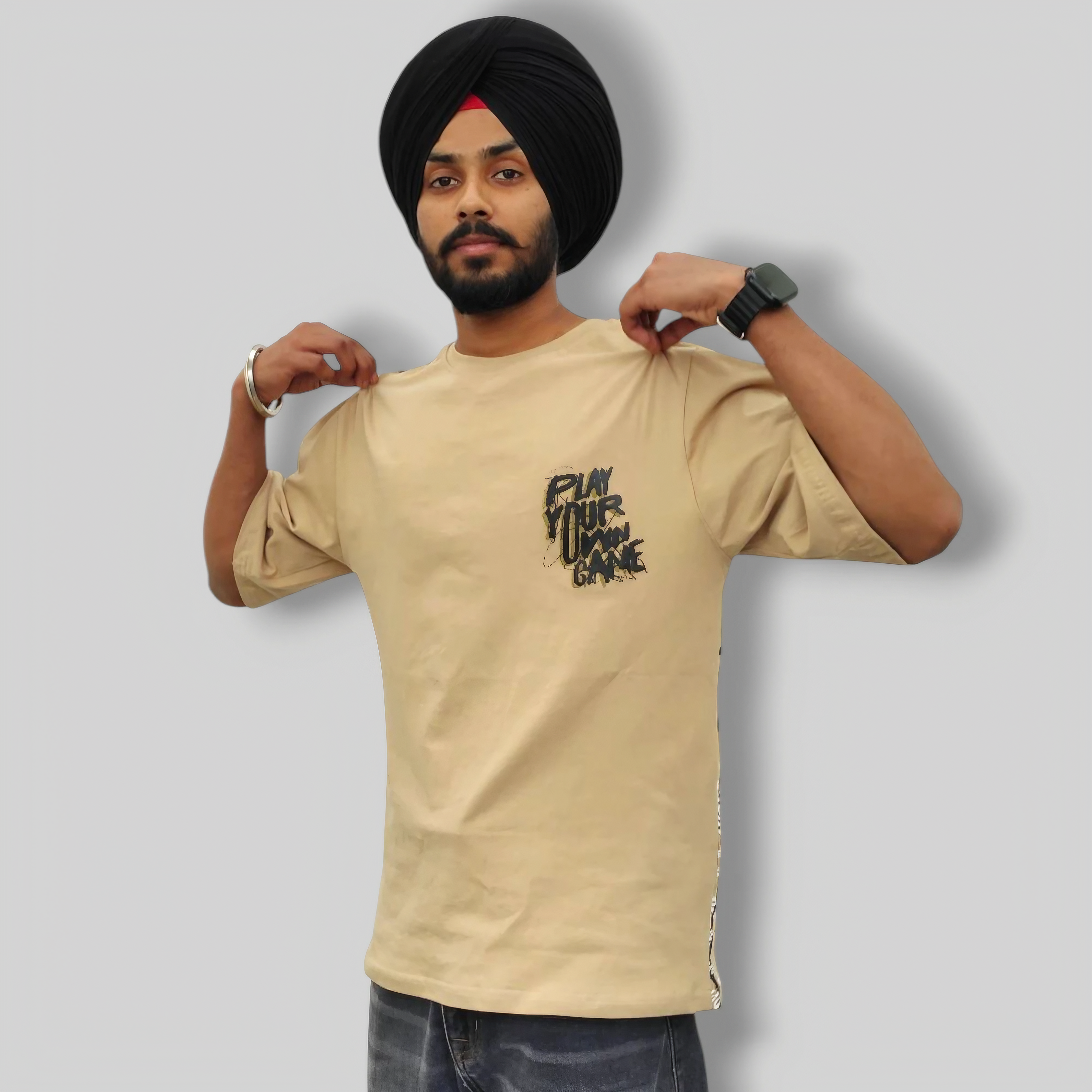 Play Your Own Game Oversized Graphic Tee – 240 GSM Pure Cotton (Beige Edition)